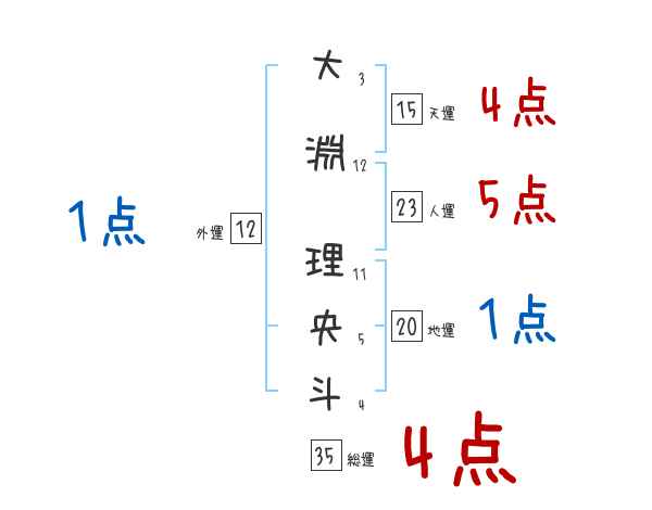 大淵理央斗さんの画数の鑑定結果