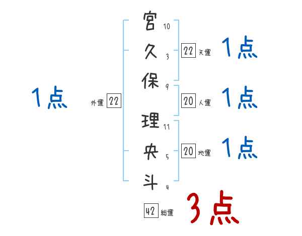 宮久保理央斗さんの画数の鑑定結果