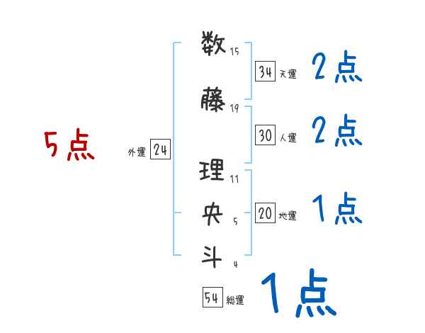 数藤理央斗さんの画数の鑑定結果