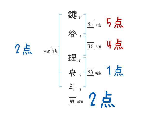 鍵谷理央斗さんの画数の鑑定結果