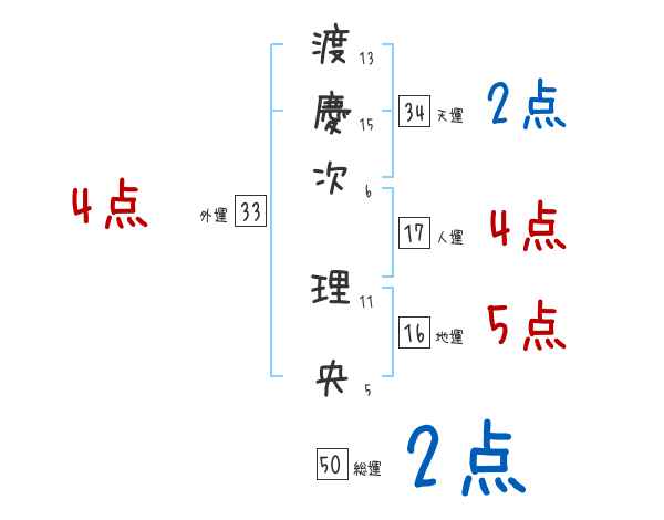 渡慶次理央さんの画数の鑑定結果