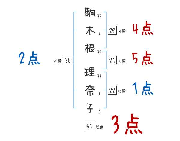 駒木根理奈子さんの画数の鑑定結果