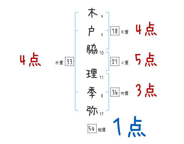 木戸脇理季弥さんの画数の鑑定結果