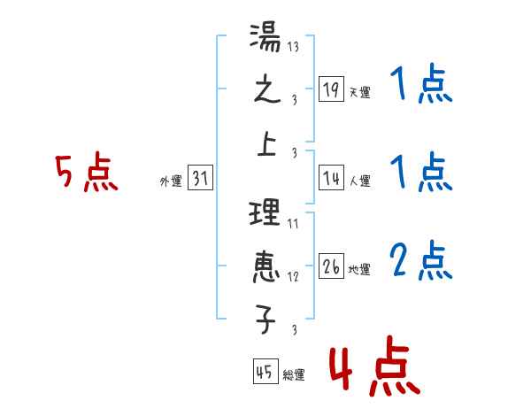 湯之上理恵子さんの画数の鑑定結果