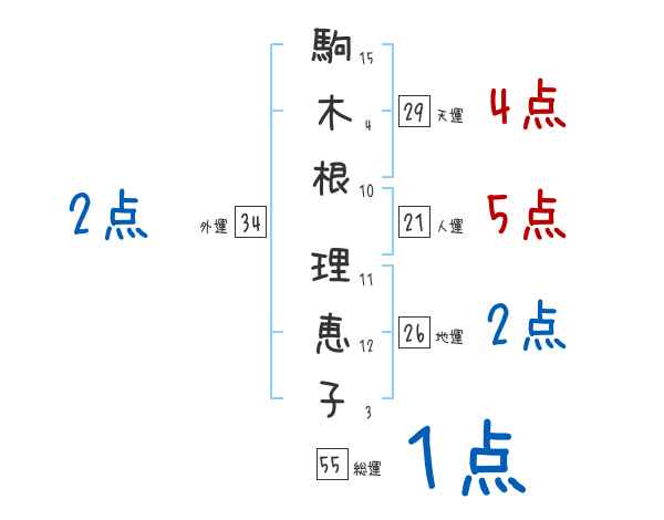 駒木根理恵子さんの画数の鑑定結果