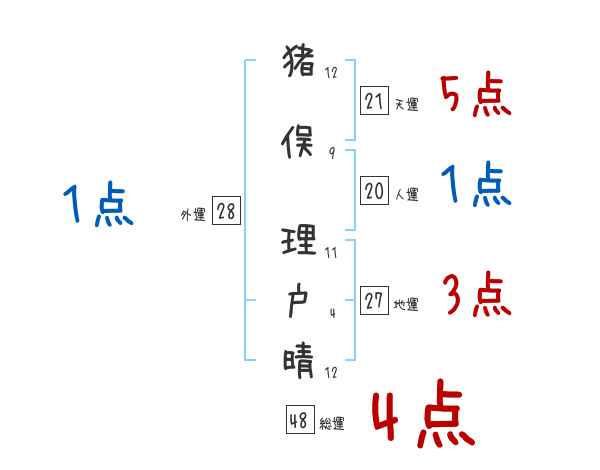 猪俣理戸晴さんの画数の鑑定結果