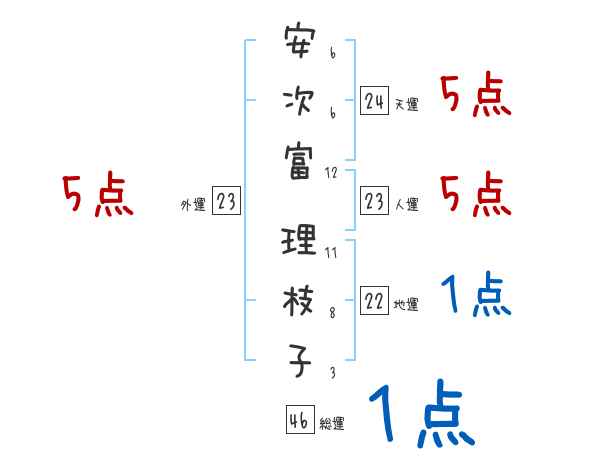 安次富理枝子さんの画数の鑑定結果