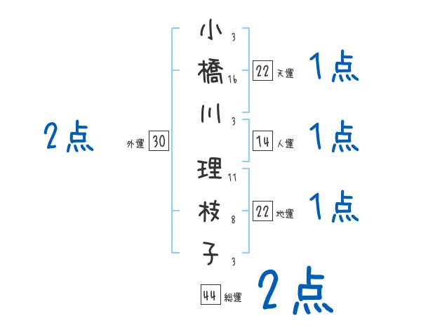 小橋川理枝子さんの画数の鑑定結果