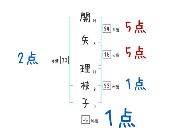 天運![]() | 関矢理枝子さんの天運は24画の5つ星!家庭運が良く順調な人生。金運にも恵まれる。 家系が持つ宿命的な運勢を表します。祖先から受け継いだ苗字ですので自分の力が及びません。家柄を象徴します。 |