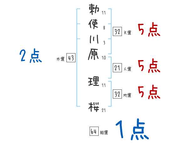 天運![]() | 勅使川原理桜さんの天運は32画の5つ星!柔軟性があり成功する。チャンスが多く金運が良い。 家系が持つ宿命的な運勢を表します。祖先から受け継いだ苗字ですので自分の力が及びません。家柄を象徴します。 |