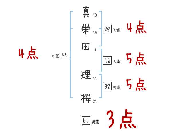 真栄田理桜さんの画数の鑑定結果
