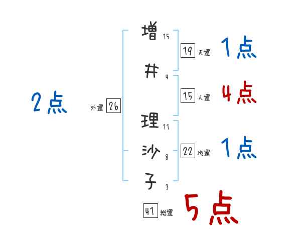 天運![]() | 増井理沙子さんの天運は19画の1つ星!優れた才能を持ちますが、協調性が足りないことも。周りの人と協力する事を意識しましょう。 家系が持つ宿命的な運勢を表します。祖先から受け継いだ苗字ですので自分の力が及びません。家柄を象徴します。 |