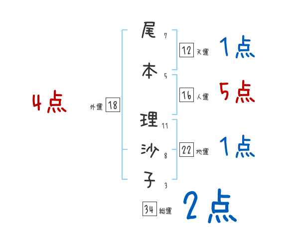 尾本理沙子さんの画数の鑑定結果