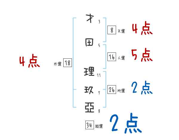 天運![]() | 才田理玖亞さんの天運は8画の4つ星!勤勉家。根気強く努力し成功する。忍耐力がある。 家系が持つ宿命的な運勢を表します。祖先から受け継いだ苗字ですので自分の力が及びません。家柄を象徴します。 |