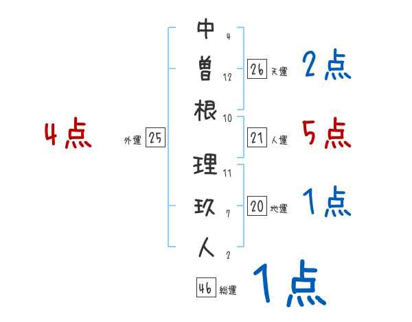 人運![]() | 中曽根理玖人さんの人運は21画の5つ星!統率力がある。独立し成功する。名誉を手に入れる。 性格や才能などを表す2番目に重要な運勢です。人間関係や協調性、社会的な成功に影響します。主に20歳から50歳ぐらいまでの中年期の運勢を表します。 |