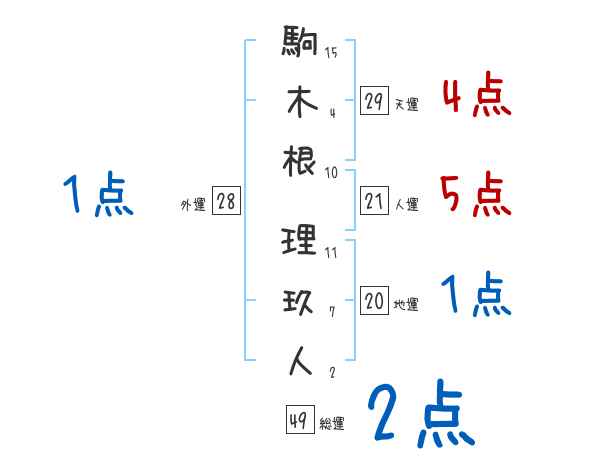駒木根理玖人さんの画数の鑑定結果