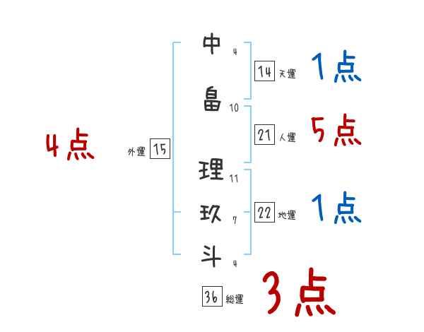 総運![]() | 中畠理玖斗さんの総運は36画の3つ星!先見性が豊かです。多少神経質で苦労することも。 あなたの人生を表す1番重要な運勢です。生涯を通じて影響する総合運となり、主に50歳以降の晩年期に影響を及ぼします。 |