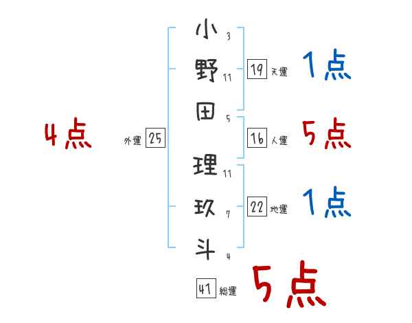 小野田理玖斗さんの画数の鑑定結果