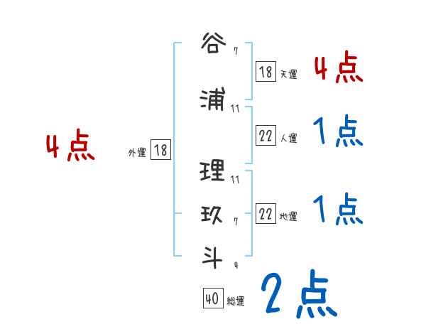 谷浦理玖斗さんの画数の鑑定結果