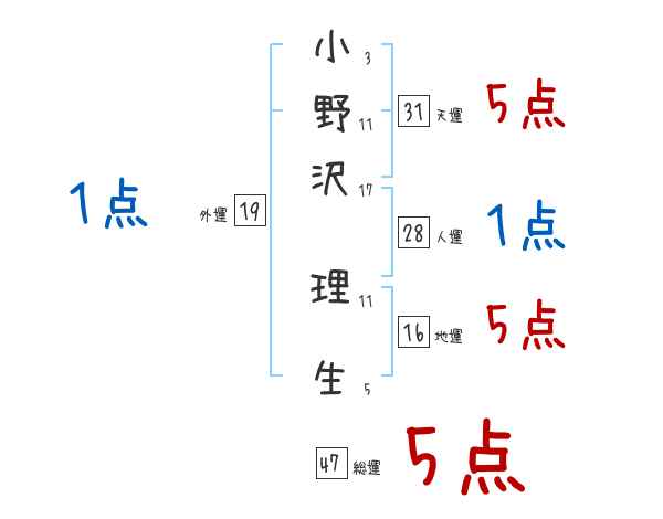 小野沢理生さんの画数の鑑定結果