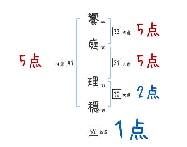 饗庭理穏さんの画数の鑑定結果