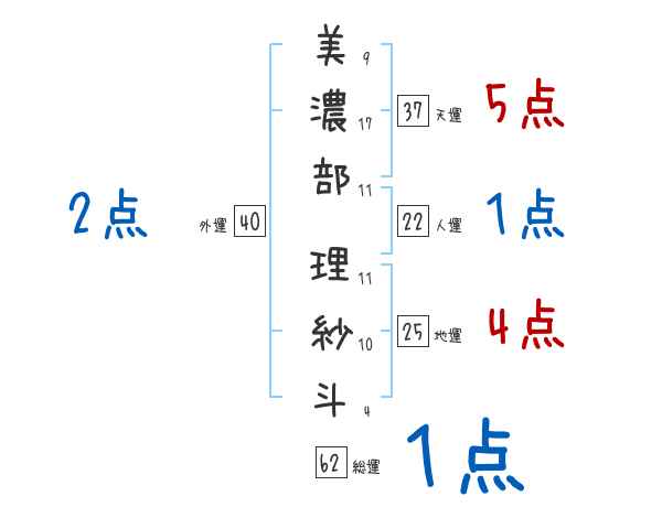 人運![]() | 美濃部理紗斗さんの人運は22画の1つ星!努力することが苦手ないっぽう手先が器用。芸術性にも優れる。 性格や才能などを表す2番目に重要な運勢です。人間関係や協調性、社会的な成功に影響します。主に20歳から50歳ぐらいまでの中年期の運勢を表します。 |
