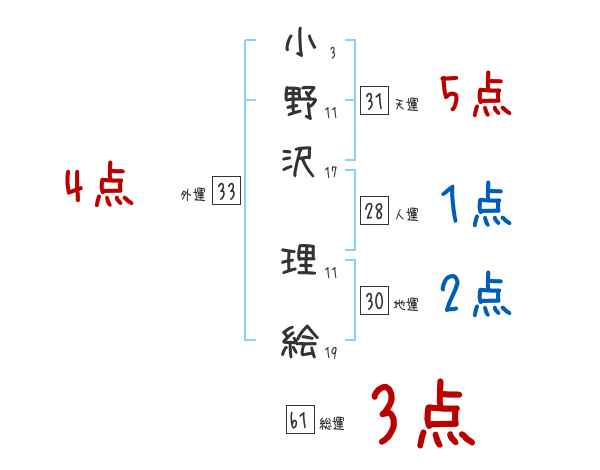 小野沢理絵さんの画数の鑑定結果