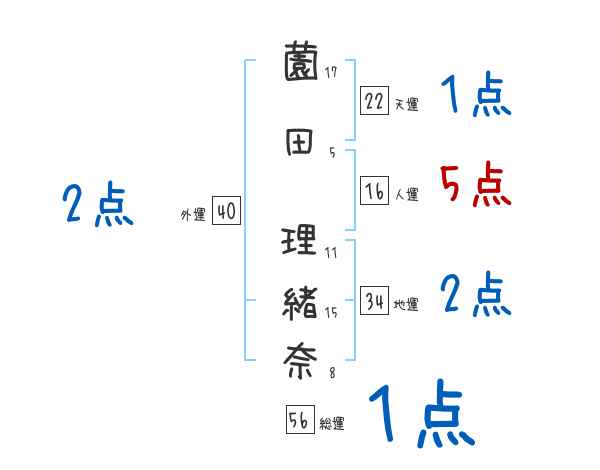 薗田理緒奈さんの画数の鑑定結果