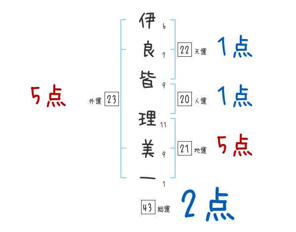 伊良皆理美一さんの画数の鑑定結果