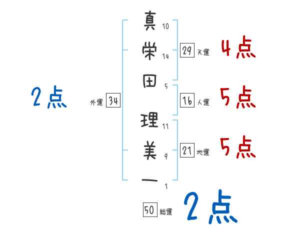 真栄田理美一さんの画数の鑑定結果