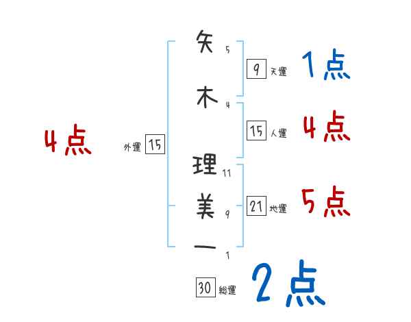 矢木理美一さんの画数の鑑定結果