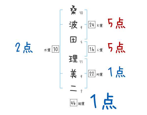 桑波田理美二さんの画数の鑑定結果