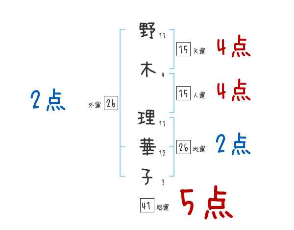 総運![]() | 野木理華子さんの総運は41画の5つ星!大志を抱き、目標に向かって実力を発揮し達成する。温和な性格。 あなたの人生を表す1番重要な運勢です。生涯を通じて影響する総合運となり、主に50歳以降の晩年期に影響を及ぼします。 |