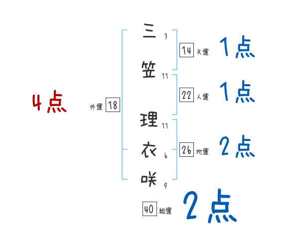 三笠理衣咲さんの画数の鑑定結果