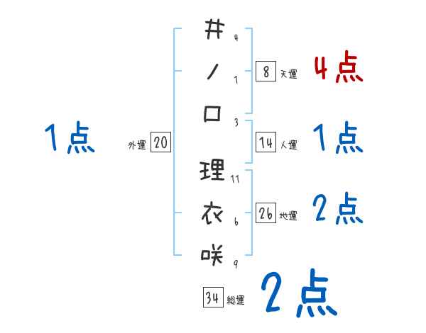 天運![]() | 井ノ口理衣咲さんの天運は8画の4つ星!勤勉家。根気強く努力し成功する。忍耐力がある。 家系が持つ宿命的な運勢を表します。祖先から受け継いだ苗字ですので自分の力が及びません。家柄を象徴します。 |
