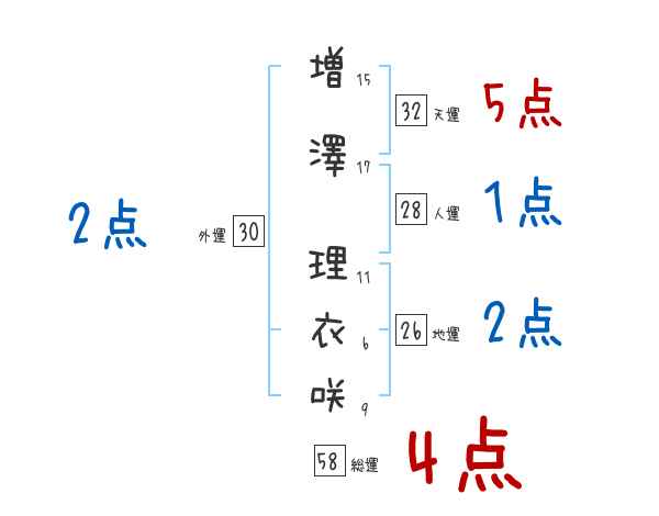 天運![]() | 増澤理衣咲さんの天運は32画の5つ星!柔軟性があり成功する。チャンスが多く金運が良い。 家系が持つ宿命的な運勢を表します。祖先から受け継いだ苗字ですので自分の力が及びません。家柄を象徴します。 |