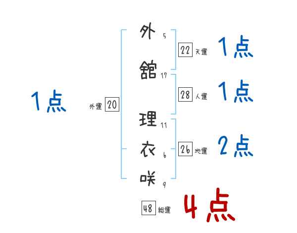 外運![]() | 外舘理衣咲さんの外運は20画の1つ星!社交が苦手。人とは違った才能があり波乱万丈な人生かも。 生活面を象徴する運勢です。外部から受ける影響力を表し、結婚運、家庭運や職場、環境への順応性を表します。 |
