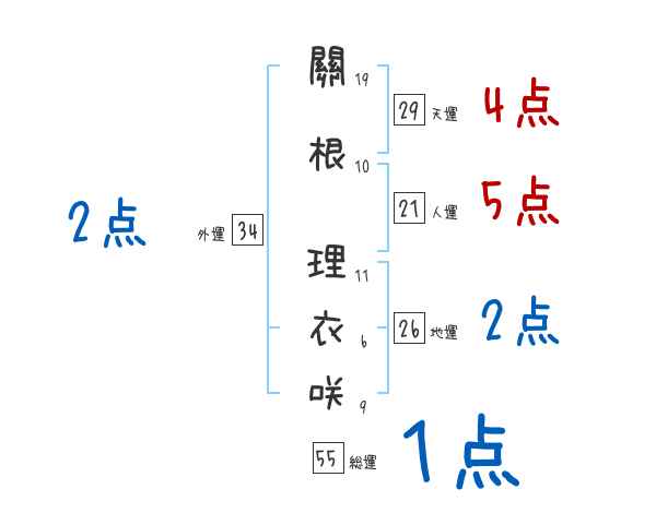 天運![]() | 關根理衣咲さんの天運は29画の4つ星!完全主義で才能がある。厳格な心の持ち主。 家系が持つ宿命的な運勢を表します。祖先から受け継いだ苗字ですので自分の力が及びません。家柄を象徴します。 |