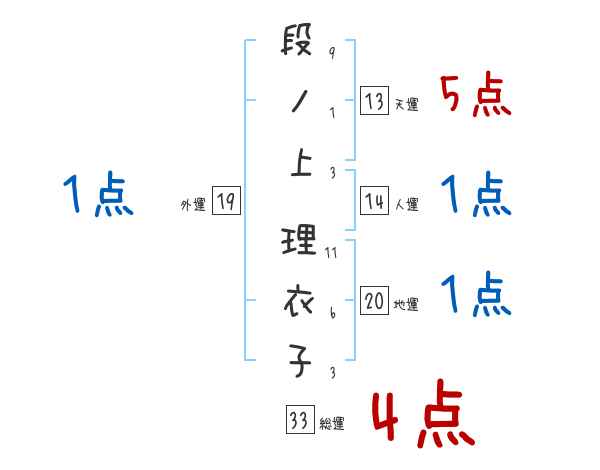 段ノ上理衣子さんの画数の鑑定結果
