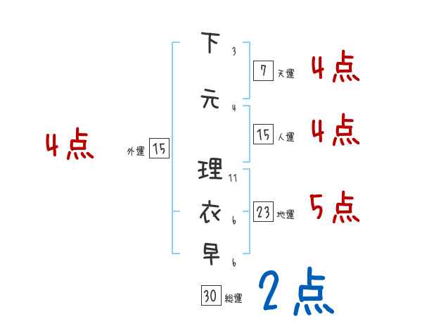 下元理衣早さんの画数の鑑定結果