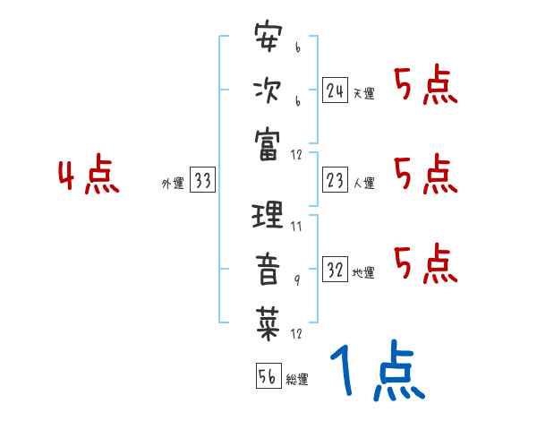 安次富理音菜さんの画数の鑑定結果