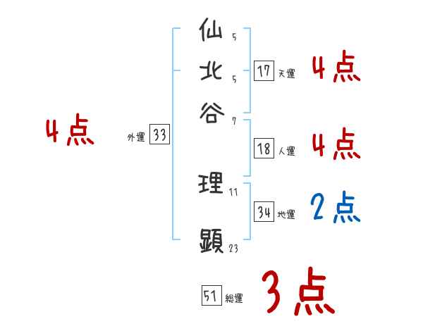 仙北谷理顕さんの画数の鑑定結果