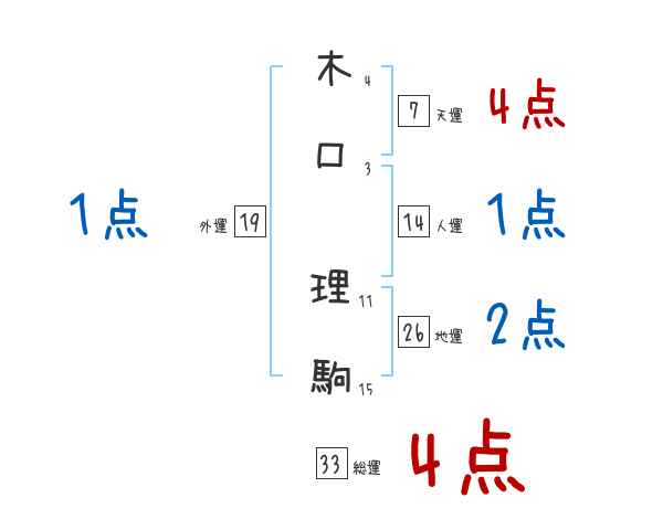 天運![]() | 木口理駒さんの天運は7画の4つ星!強い意志や信念を持ち独立心が強い。自立する。 家系が持つ宿命的な運勢を表します。祖先から受け継いだ苗字ですので自分の力が及びません。家柄を象徴します。 |