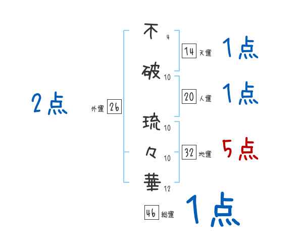 地運![]()  | 不破琉々華さんの地運は32画の5つ星!柔軟性があり成功する。チャンスが多く金運が良い。 個性を表す基礎的な運勢です。性格形成や対人関係、行動力など家庭環境に影響されます。主に誕生してから20歳くらいまでの若年期の運勢を表します。 |
