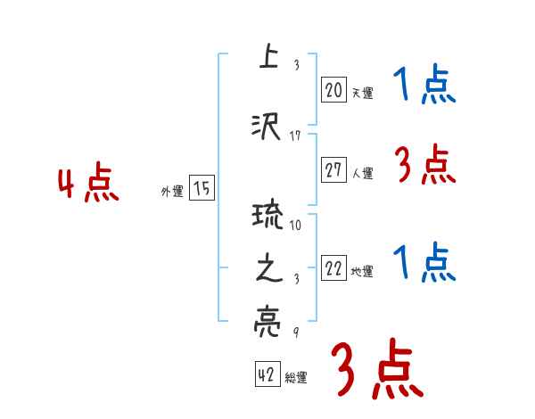 上沢琉之亮さんの画数の鑑定結果