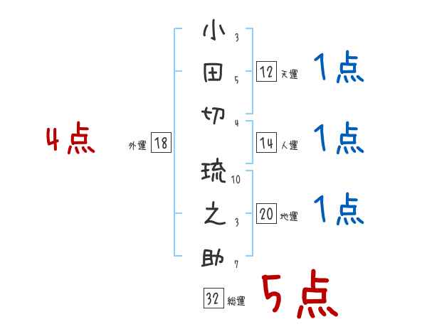 小田切琉之助さんの画数の鑑定結果
