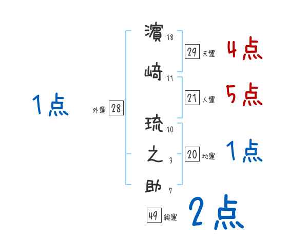 濵﨑琉之助さんの画数の鑑定結果