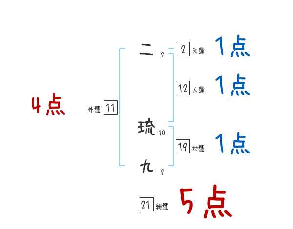 天運![]() | 二琉九さんの天運は2画の1つ星!優しいですが積極性や意思の強さに欠ける傾向があります。家庭環境の乱れに注意しましょう。 家系が持つ宿命的な運勢を表します。祖先から受け継いだ苗字ですので自分の力が及びません。家柄を象徴します。 |