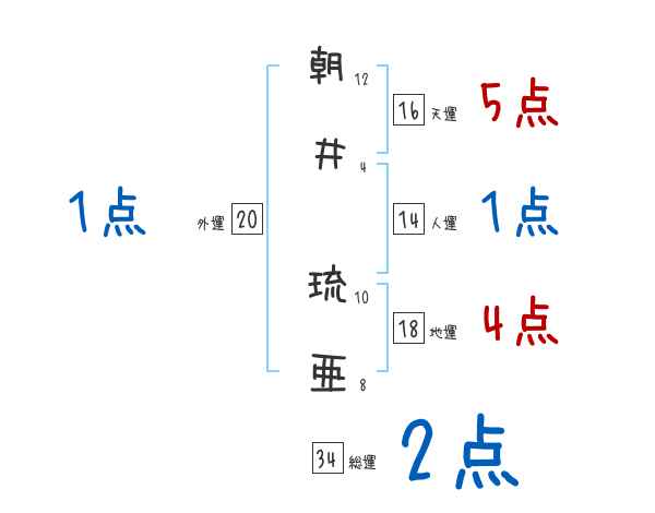 朝井琉亜さんの画数の鑑定結果