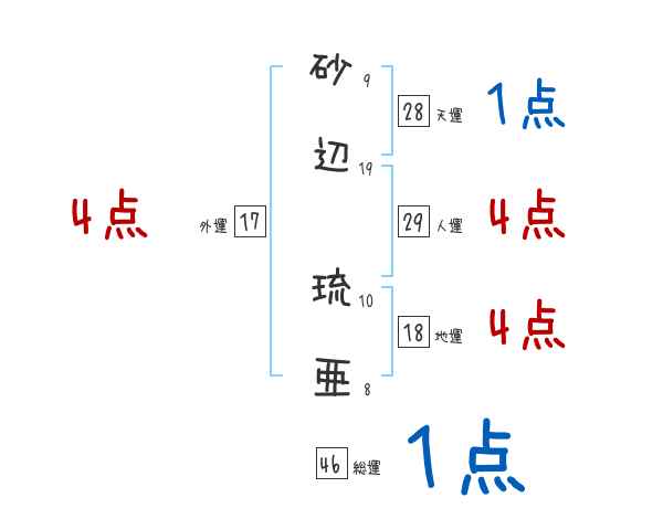 砂辺琉亜さんの画数の鑑定結果